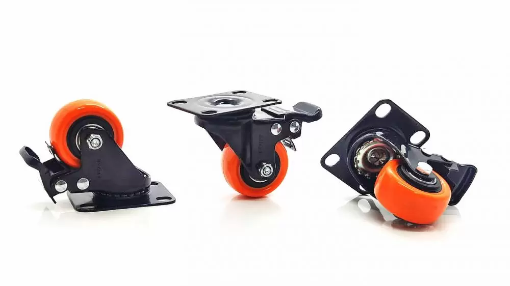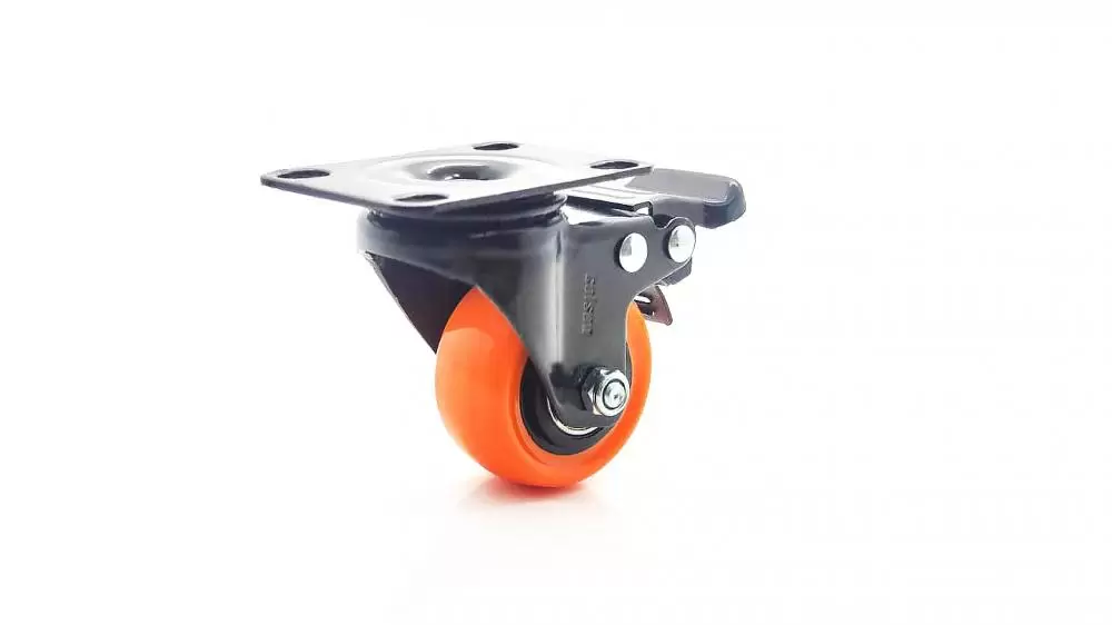 Roda em PVC Laranja duplo rolamento de esferas de precisão, com freio.