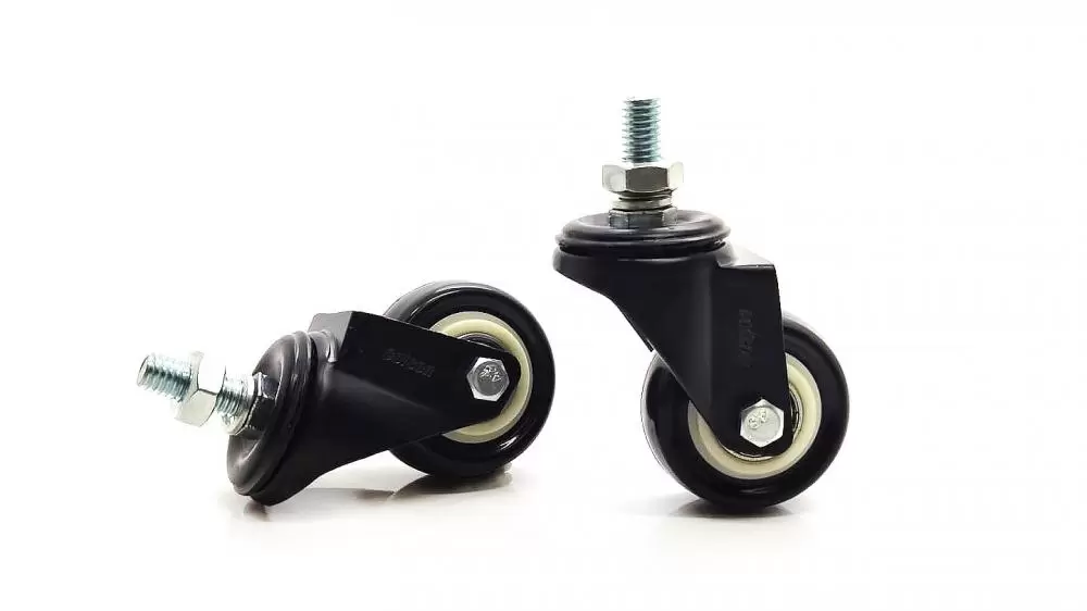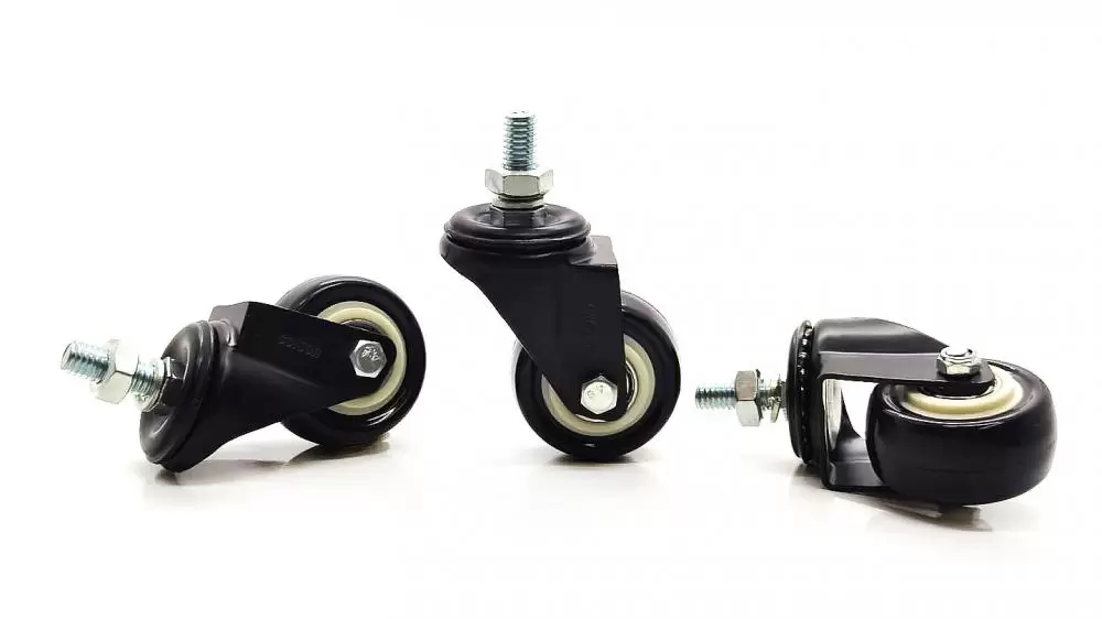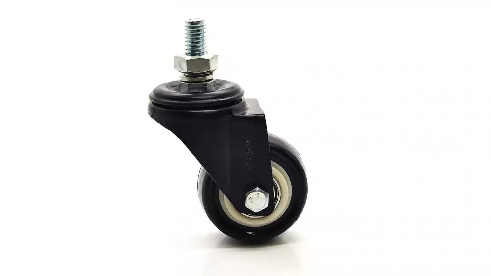 - Roda: Com duplo rolamento de esferas de precisão, núcleo em polipropileno (branco) e banda de PVC BP (preto). Dureza 75 Shore A (-10°C a 50°C).
