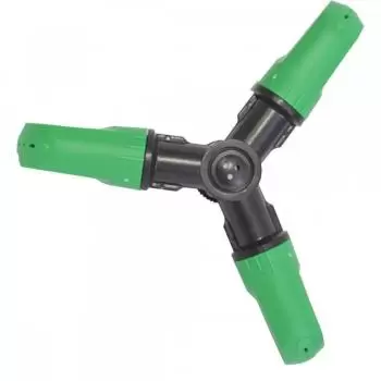 Aspersão regulável dos jatos com um pequeno giro nas extremidades dos 3 braços.