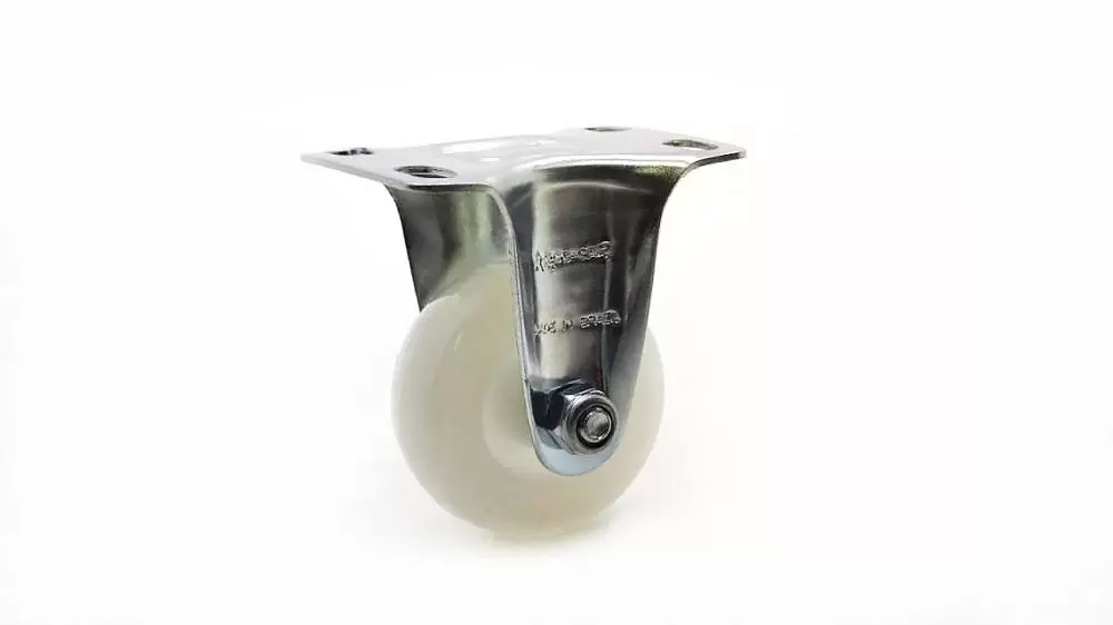 Uso em equipamentos de baixa resistência, tais como suporte para vasos, mesas de centro, oficina mecânica , display, exibidores, racks, cozinhas e outros. Tipos de Pisos - Indicado liso, madeira, metálico, cerâmica, epóxi e outros. Garfo - Fabricado em chapa estampada e acabamento zincado, eixo da roda rebitado. Roda NT - Nylon Técnico. Dureza: 75 Shore D. (-40C a +110C) Produzidas com revestimento e núcleo em nylon poliamida 6.0 de alta qualidade. São leves e possuem ótima resistência mecânica, rodam com muita facilidade exigindo menor esforço para manobras e movimentação. Ideais para aplicações em ambientes úmidos, são resistente as graxas, óleos, sais e alguns tipos de ácidos. Fabricadas com material reciclável. A velocidade de trabalho indicada é até 4 km/h.