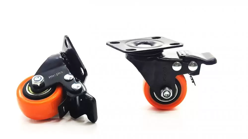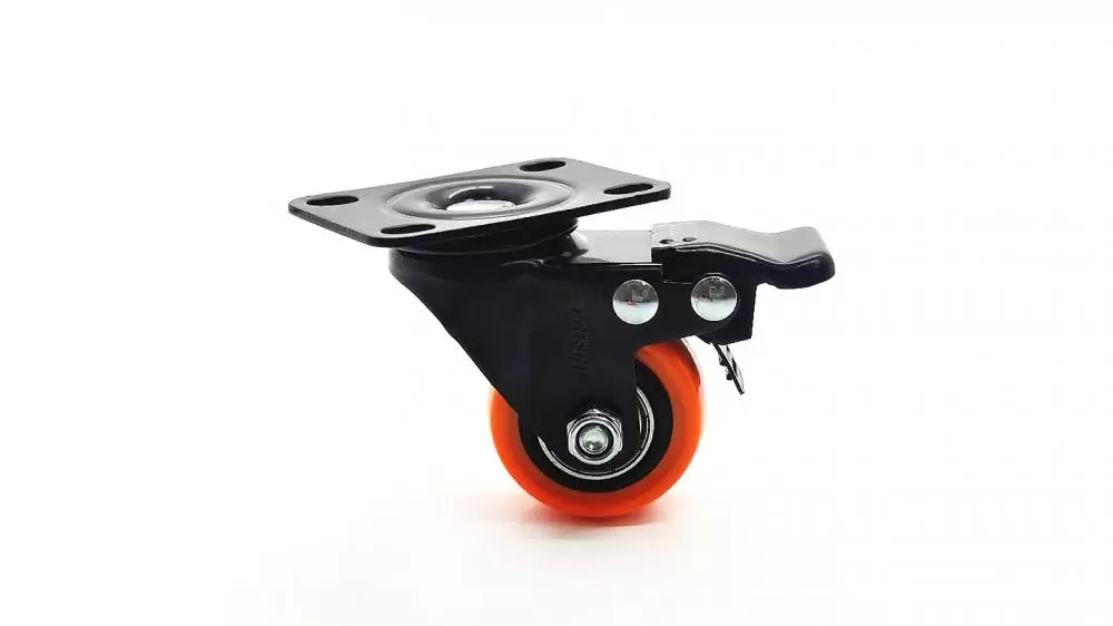 Rodizio black placa giratoria 1.5/8' com freio laranja colson